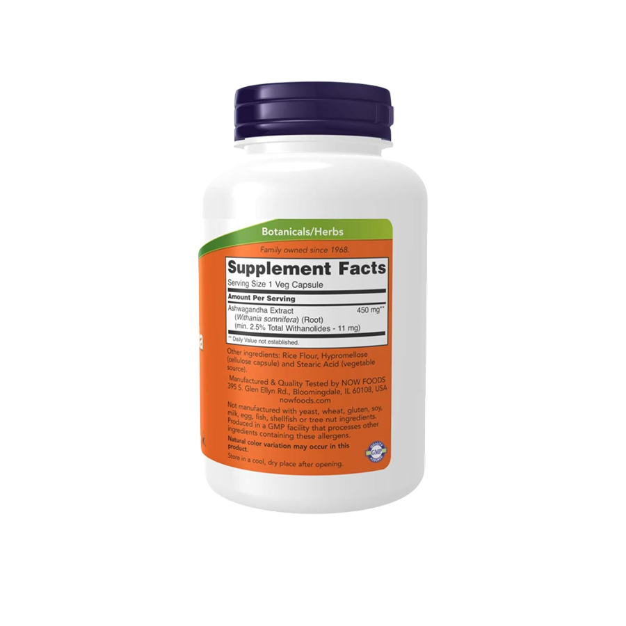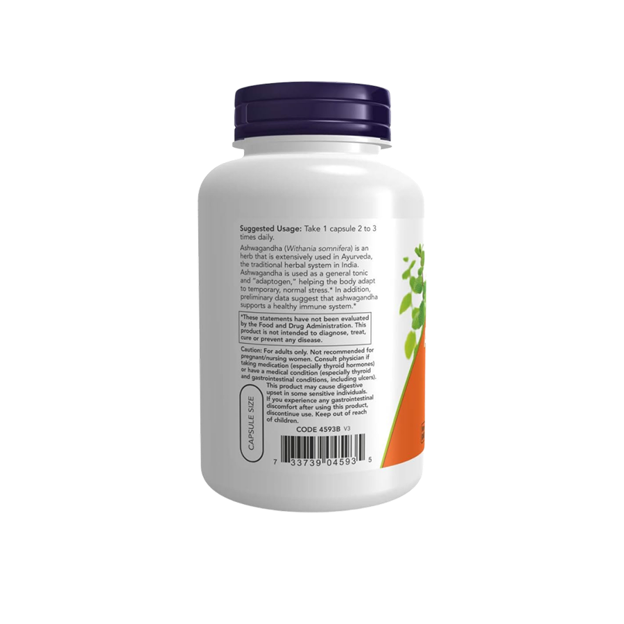 ADAPTOGENO AYURVÉDICO*: Ashwagandha se utiliza como tónico general y adaptógeno, ayudando al cuerpo a adaptarse al estrés normal temporal. * AHORA Ashwagandha es un extracto estandarizado (450 mg por porción). Tomar 1 cápsula de 2 a 3 veces al día.