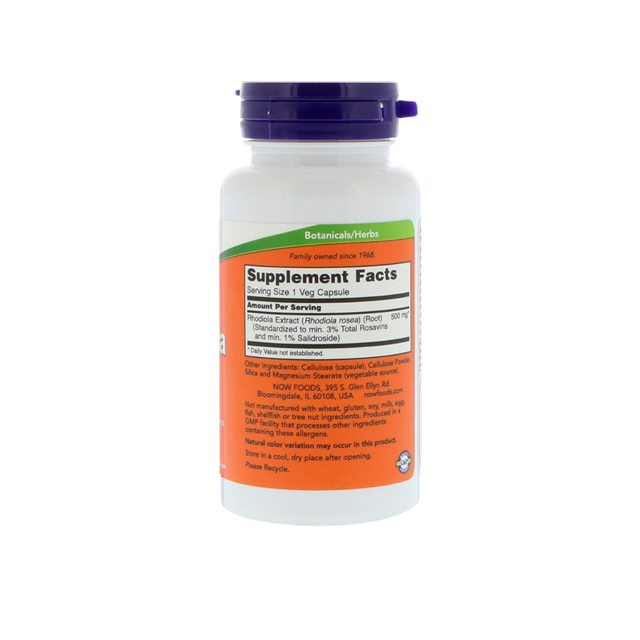 Hierba adaptogénica 3% Extracto estandarizado ayuda al cuerpo a adaptarse al estrés de la vida diaria Sin OMG Un suplemento dietético Vegetariano – Vegano Botánicos/Hierbas Propiedad familiar desde 1968 GMP Calidad aseguradaRhodiola (Rhodiola rosea) es autóctona de las regiones árticas y alpinas de Europa, Asia y América y ha sido utilizada durante mucho tiempo como tónico por muchas culturas, incluyendo los antiguos griegos. Rhodiola es generalmente conocida como un «adaptógeno», un término que se refiere a cualquier agente que posee la capacidad de apoyar la capacidad natural del cuerpo para adaptarse a las condiciones cambiantes de la vida. AHORA Rhodiola está estandarizada al 3% de Rosavins totales y min. Salidrosida al 1%.
